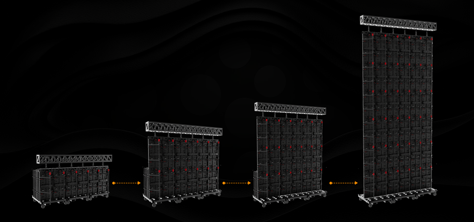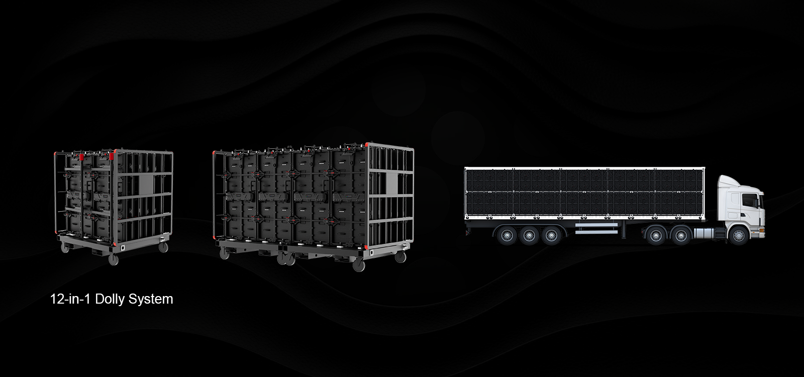 The CL series provides a complete fast-hanging touring solution with 500x1000mmx45mm panels,hanging bars,integrated foldable air frame system,and 12-in-1 dolly systems,all working together to enable crane-assisted now hoisting for quick and stable installation.