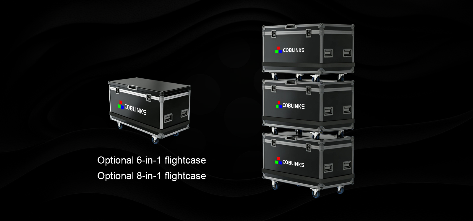 The CL series offers optional flight case solution with tour-ready protection–incluidng a 6-in-1 or 8-in-1 case for 500x1000mm panels,both engineered with road-proven durability to safeguard your equipment during transport